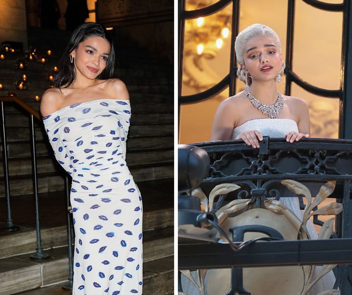 つややかな黒髪が印象的だったレイチェルが、舞台「エビータ」でプラチナブロンドヘアに。クラシカルなまとめ髪とのバランスも〇。