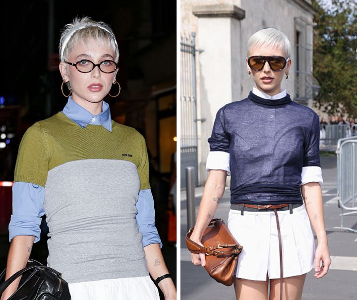 起業家でインフルエンサーのアマリー・ガスマンは、肩上くらいのボブをバッサリショートに。さらにあか抜けた印象に。