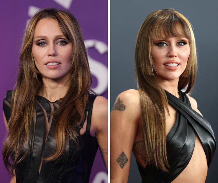 最近はロングヘアのマイリーが、バングス×姫カットが新鮮なスタイルに。同じレングスでもガラリと印象チェンジ。