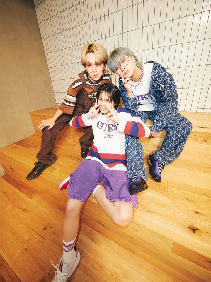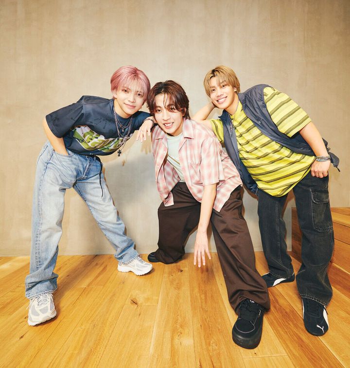 【星那】Tシャツ¥7,997/ノーティカ(フリークス ストア渋谷)、ベスト¥12,100/ワッツ アップ(HUE DESIGNS)、パンツ¥16,500/リーバイス®️(リーバイ・ストラウス ジャパン)、スニーカー¥14,300/プーマ(プーマ お客様サービス)、アクセサリー/本人私物、【竜大】Tシャツ¥14, 300/カルバン・クライン ジーンズ(カルバン・クライン カスタマーサービス)、チェックシャツ¥7,700/フリークス ストア、パンツ¥7,997/レッドキャップ×フリークス ストア、スニーカー¥17,380/ノースウェーブ × フリークス ストア(以上すべてフリークス ストア渋谷)、アクセサリー/本人私物、【晃大】Tシャツ¥6,996/ノーティカジーンズカンパニー(フリークス ストア渋谷)、デニムパンツ¥18,700/リーバイス®️(リーバイ・ストラウス ジャパン)、スニーカー¥22,330/ナイキ スポーツウェア(ナイキ カスタマーサービス)、ベルト/スタイリスト私物、アクセサリー/本人私物
