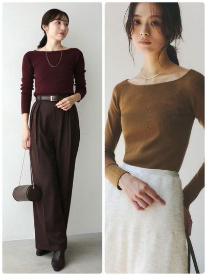 伸縮性のある柔らかなリブニット。ちょうどいい開きのボートネックだからお仕事スタイルにもぴったりです。もたつたかないシルエットでジャケットのインナーに◎。カラバリも豊富でブラック、グレー、バーガンディ、アイボリー、キャメルの5色をご用意しています。色違いで揃えたくなるアイテム!
