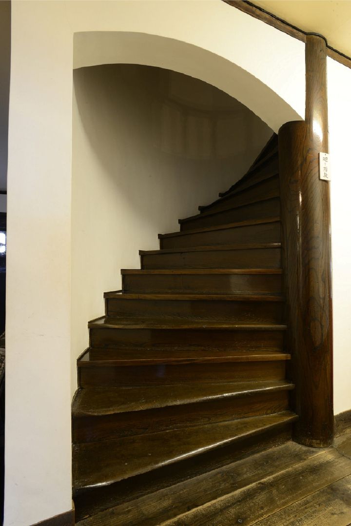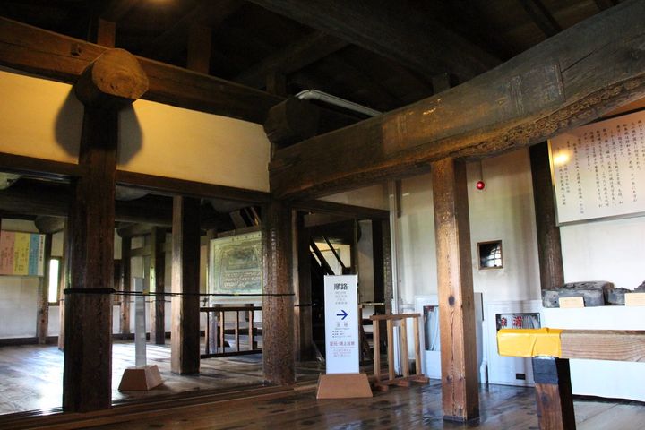 「渡櫓」の2階には、曲がった木がそのままの状態で梁として使われている場所も。自然木を加工せずに使うことで、強度を保った。
