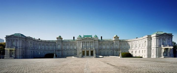 1909年に東宮御所として建設された、日本では唯一のネオ・バロック様式による宮殿建築物。第二次世界大戦後、国の迎賓施設として大規模な改修を実施。和風別館の新設と合わせて1974年に現在の迎賓館として新たな歩みを始めた。その後、2009年の大規模改修工事を経て、日本の建築を代表するもののひとつとして、国宝に指定。