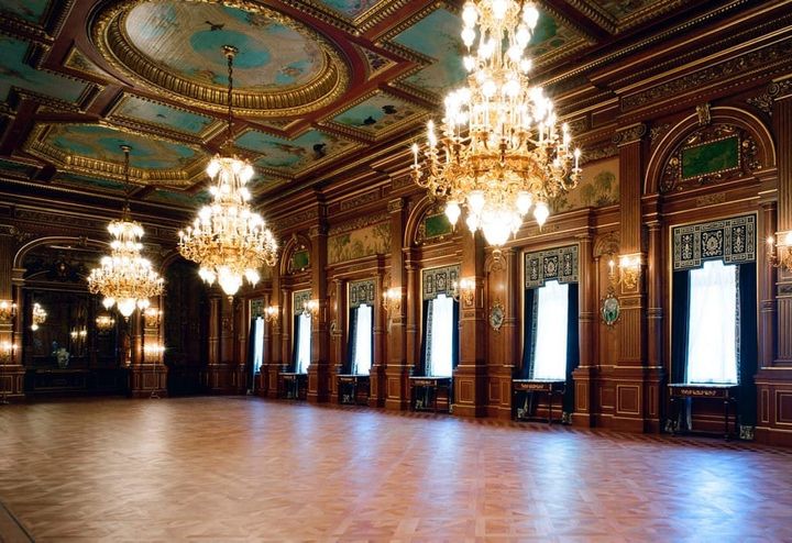 「朝日の間」と相対するのは、条約の調印式などに使われる「彩鸞の間」(写真)。室内の装飾には19世紀初頭ナポレオン一世の帝政時代にフランスで流行したアンピール様式を採用した。