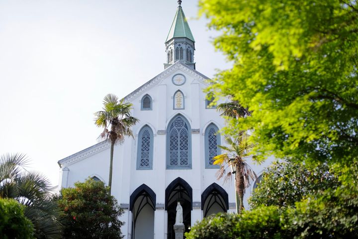 長崎湾を見下ろす丘に立つ、日本におけるキリスト教の教会建築を代表する建物。1864年、居留地に住む外国人のために建てられた大浦天主堂は日本に現存する最古のカトリックの教会堂で、教会建築として唯一、国宝に指定されている。