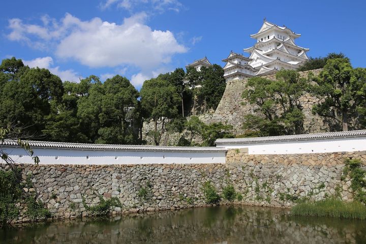 真っ白な外観と、その美しい佇まいから「白鷺城」という異名をもつ、17世紀初頭、日本の城郭建築の最盛期に造られた木造建築の最高傑作。1609年、池田輝政によって築かれて以来、戦などで大きく損傷することもなく、今に至る。現在の姿が整ったのは、本多忠政が西の丸を造営した1618年。敷地(内曲輪)の広さは約23haに及ぶ。