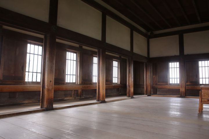 戦乱の世が終わり平和な時代に増設された「辰巳附櫓」には、石落(石垣に到達した敵を攻撃するために、床に開けた穴のこと)がなく、「月見櫓」の「舞良戸(まいらこ)」と呼ばれる板戸には、武備がない。また、朱色の漆をほどこした刎高欄(はねこうらん)も、泰平の世の豊かさと平穏を感じさせる。