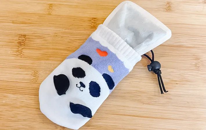 350㎖サイズで、口を閉じるヒモがついているので、カイロがすっぽりと入りました。