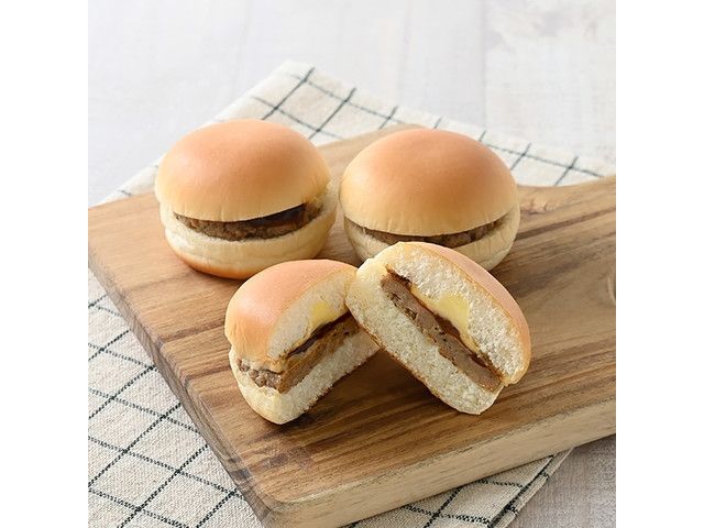 ハンバーグにてりやきソースとマヨネーズをトッピングしてサンドした、ミニバーガー3個入です。