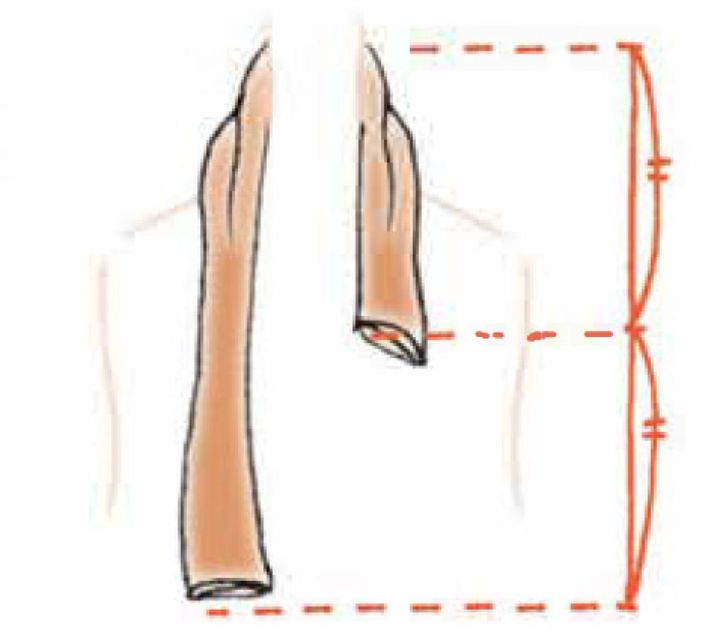 【1】4つ折り(※1)にしたスカーフを左右の長さが2:1になるように首にかける。