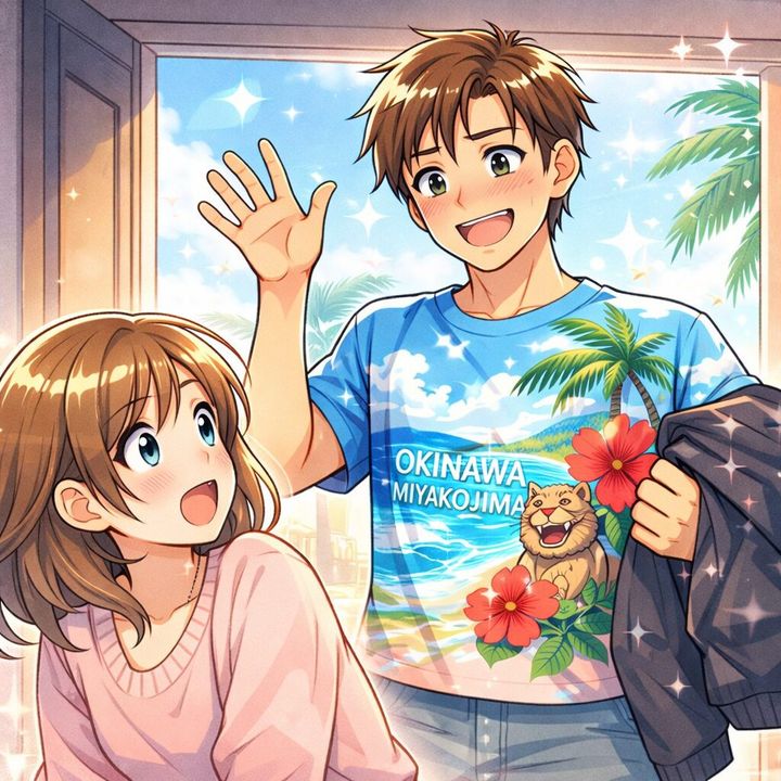 「北海道の物産展で、わざわざそんな『THE 沖縄』なTシャツ買って、しかも着て帰ってくるの?」 私は冷ややかな声で問い詰めました。