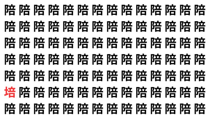 たくさんの「陪」の中に、よく似た別の漢字が1文字だけ隠れています。