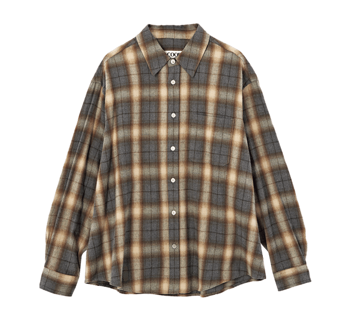 シャツ上から:グラデが特徴的なオンブレチェックで一層旬に。¥38,500(クアー/ウィムガゼット 青山店)