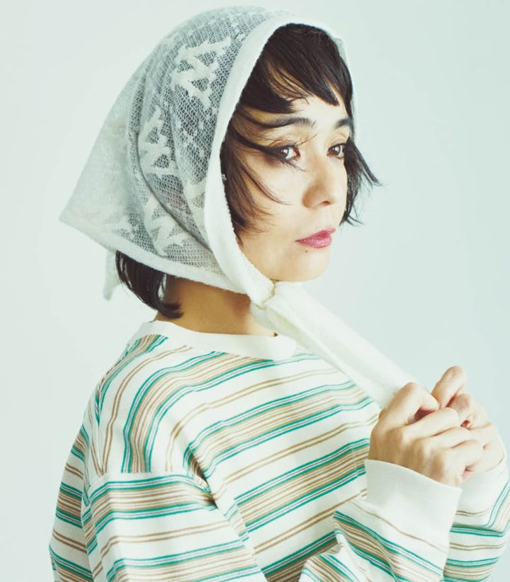 そのままサッと巻くだけで決まる三角形のニットバブーシュカ。レースのような透け感のあるニット素材が秋冬のスタイリングにマッチ。いつものシンプルコーデがグッと見違えるはず。ニットスカーフ¥19,800(ウィム ガゼット/ウィムガゼット 青山店)、ボーダーカットソー¥25,300(ロンハーマン)