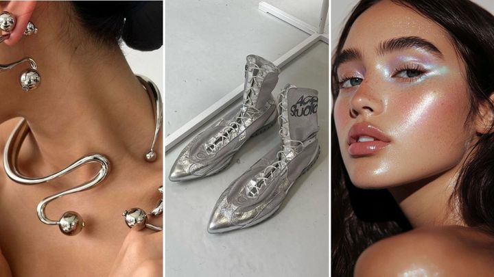 Z世代やミレニアル世代が次に目指すのは、近未来を意識したスタイル。シルバーやクリア素材を基調に、エッジィなジュエリーやエアリーな小物でアクセントをプラス。メタリックや光沢感を大胆に取り入れれば、どんなコーディネートも一気にフューチャリスティックな雰囲気に。宇宙を感じさせるディテールを重ねて、ギャラクシームードを全身で楽しみたい。