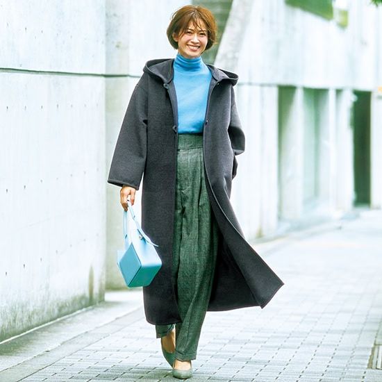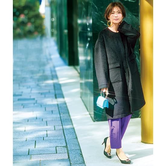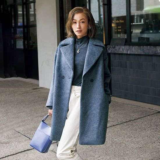 ③旬のシャギー素材&ミドル丈でサラリ羽織るだけで決まる!