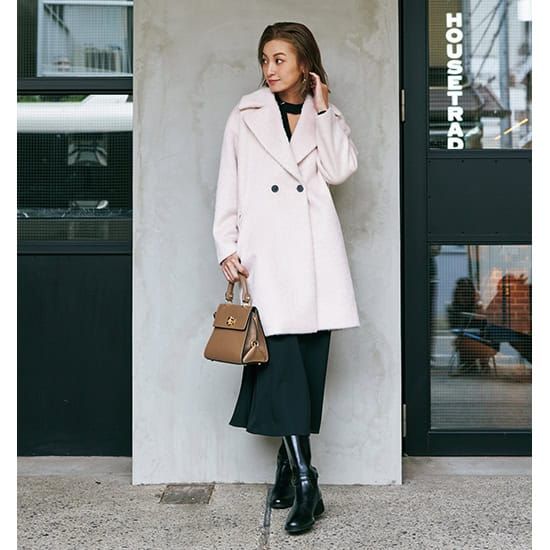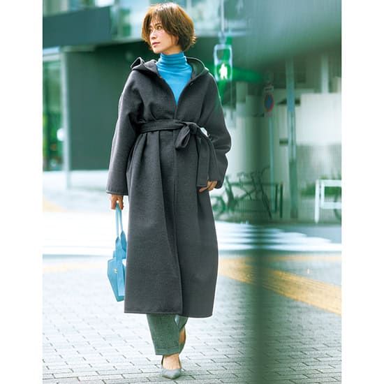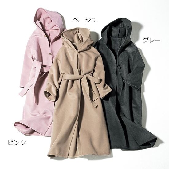 羽織るだけで旬の立体的シルエットが完成するフードコート。ウール調のフードコートは、品がある高見えフェイスで、シンプルで着回しも利くデザインが魅力です。ダークな冬の着こなしにはライトなピンクやベージュもオススメです。