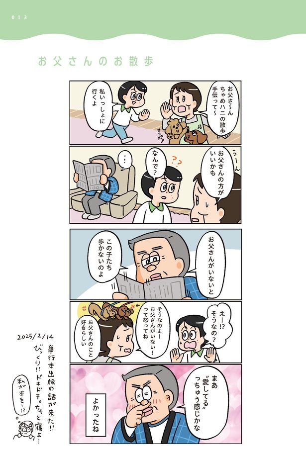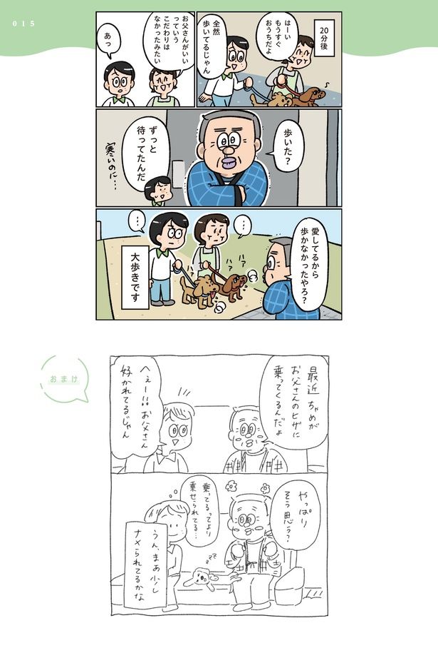 3. 「自分がいないと犬たちは歩かない」と自慢げな父。試しに父の同行無しでお散歩へ連れて行くと…/小林一家は今日も「ま、いっか!」