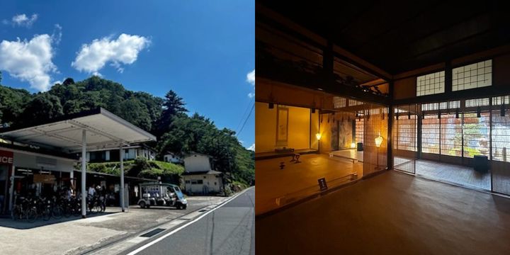 石見銀山の駐車場から少し離れた場所に「ぎんざんカート」やレンタル自転車(エリアが広範囲なので移動に乗ると便利)のカウンターがあります。人気なので待つことも。世界遺産に登録された石見銀山遺跡は、銀鉱山跡、町並み、街道、港、港町、城跡など14の資産で構成されており、写真右はそのなかの一つ重要文化財の熊谷家住宅。石見銀山で栄えた商家を見学できるようになっています(入場料は高校生以上600円/開館は9時30分~17時/火曜定休、年末年始は休み) fujingaho