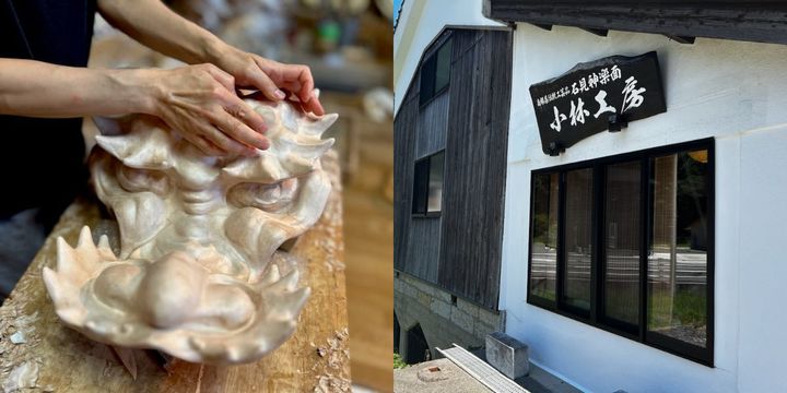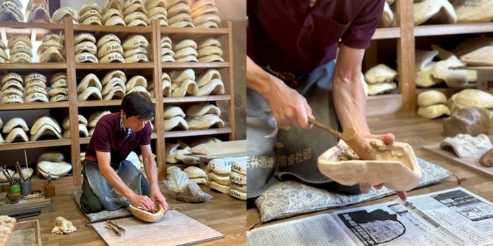 石見神楽面を手掛ける<a href="http://www.kobayashi-kobo.jp/" target="_blank">「小林工房」</a>でお面作りを見学させてもらいました。幼少期に石見神楽に傾倒し、なんと11歳から石見神楽面の技法を学び始めたという小林泰三さん。石見の土で型を作り、そこに石州半紙を何重にも重ねて貼ります。乾いたら土の型を脱活(だっかつ)、つまり割って、和紙の面を取り出していきます fujingaho