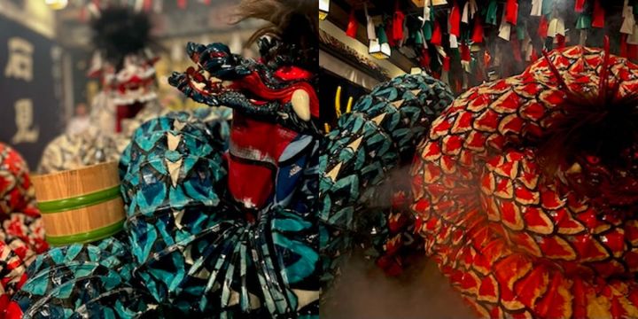 鮮やかな衣裳、大蛇の大迫力の蛇胴、太鼓と笛の華やかな囃子が観客を引き込み、夜を徹して奉納されることもあります。現在は観光客にも人気の伝統芸能です。