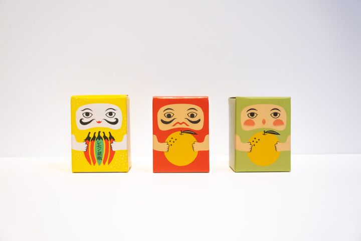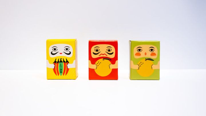 左から:瀬戸内レモンだるま/吹屋の紅だるま/吹屋の青だるま(全701円)