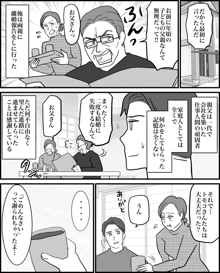 結果的に離婚になってしまったけれど、両親は何だかんだ言いながらも、こんな俺でも受け入れてくれる。俺が子どもたちを受け入れられなかったのは、すべて俺自身の未熟さゆえのことだ。別れてしまったけれど、俺はこれからもできるかぎりのサポートをしていくと決めた。「親」にはなれなかったけれど、子どもたちを振り回してしまった、せめてもの償いとして……。