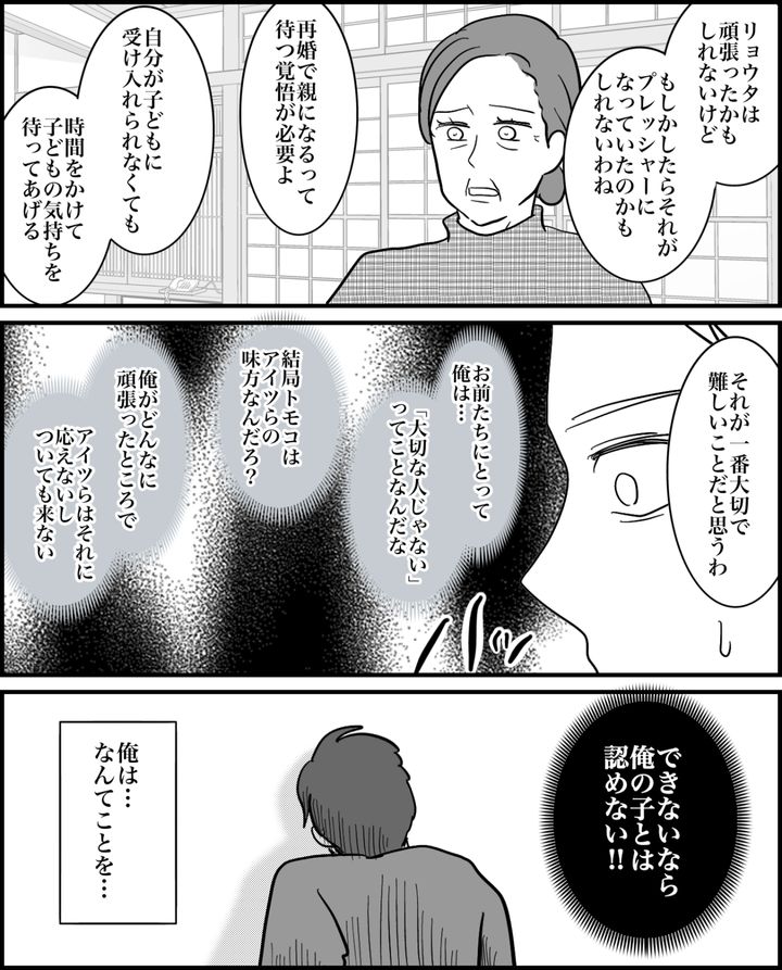 俺は子どもたちの気持ちに寄り添うべきだったし、たとえ受け入れられなくても、時間をかけて待つ覚悟がないとダメだったのだろう。今さら後悔しても遅いけれど……。俺が落ち込んでいると、父が諭すような口調で語りかけてきた。