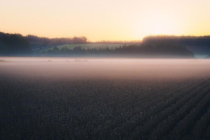 畑の土の香りがして、朝霧に日が差し、見るもの全て幻想世界へ。