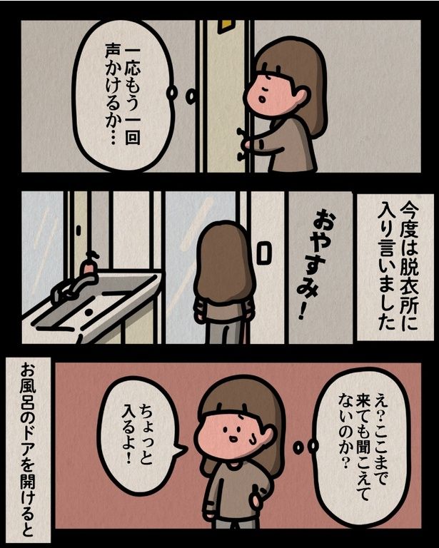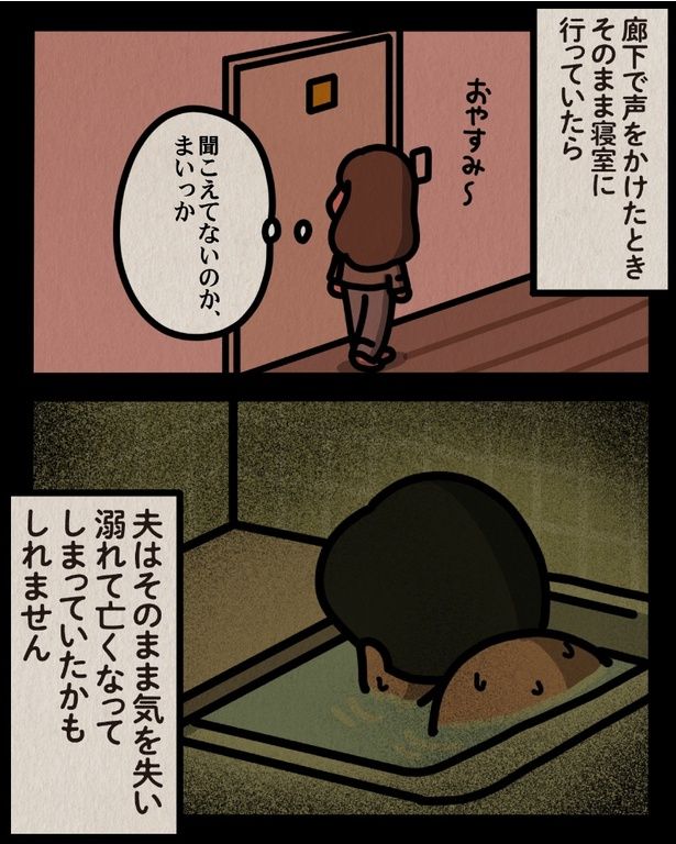 お風呂に入っている夫に何度か声をかけたのに返事がない。動画に夢中になっているのかと思っていたら…/身の毛がよだつゾッとした話