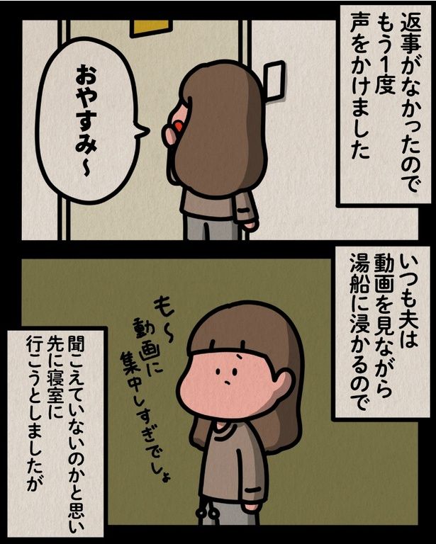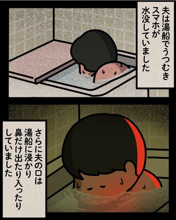 3. お風呂に入っている夫に何度か声をかけたのに返事がない。動画に夢中になっているのかと思っていたら…/身の毛がよだつゾッとした話