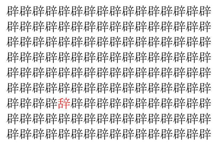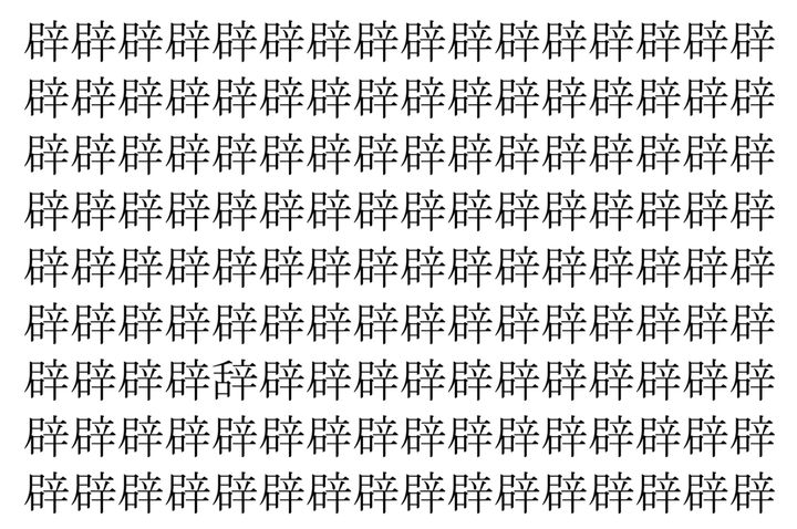 【脳トレ】「辟」の中に紛れて1つ違う文字がある!?あなたは何秒で探し出せるかな??【違う文字を探せ!】
