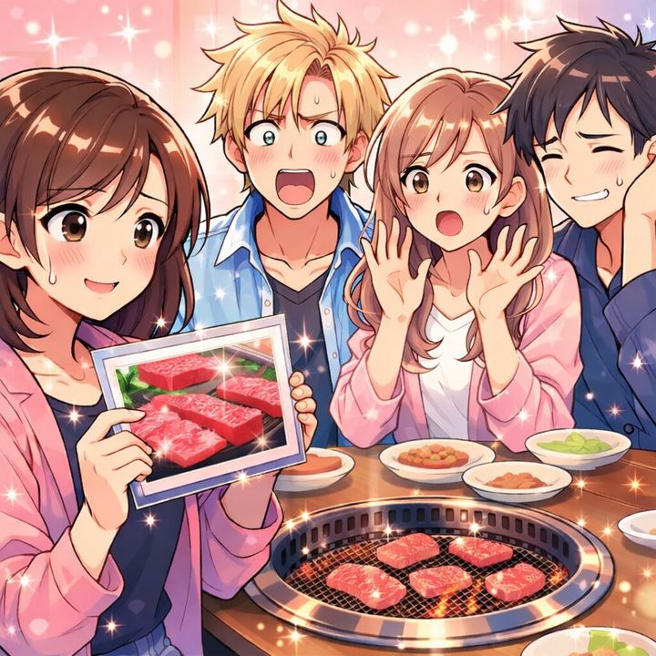 高級焼肉店で、頼んでもいない特上カルビを次々と注文する友人たち。