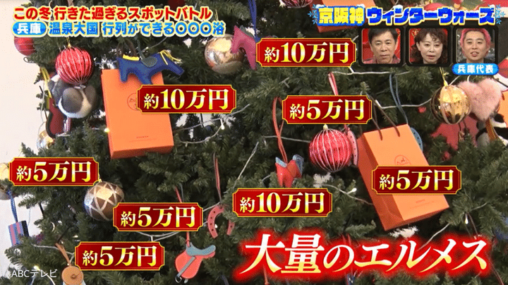 兵庫・淡路島のオーシャンビューリゾートには、エルメスチャームだらけの超高級クリスマスツリーがある。ツリーの飾り1個あたりの価格は、なんと約5万~38万円! 岡村隆史(ナインティナイン)の後輩いわく、「あん中の1個が僕の月収と一緒ぐらい」だそうだ。