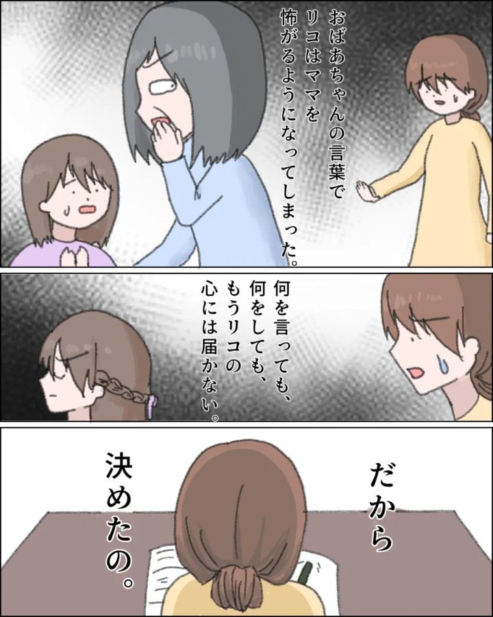 『おばあちゃんの言葉でリコはママを怖がるようになってしまった。何を言っても、何をしても、もうリコの心には届かない。だから決めたの』