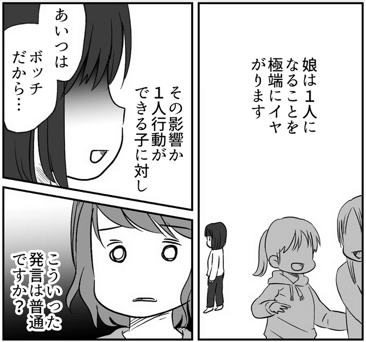 1人行動を極端にイヤがるわが子「あいつはボッチだから」ひとりぼっちの子をからかう。普通ですか?