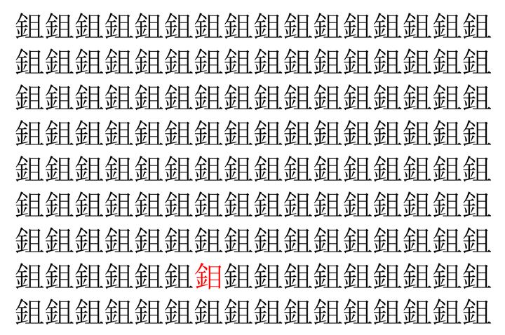 2. 【脳トレ】「鉏」の中に紛れて1つ違う文字がある!?あなたは何秒で探し出せるかな??【違う文字を探せ!】