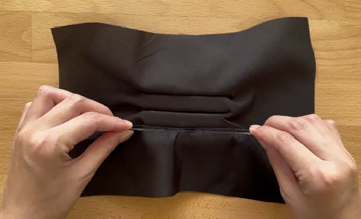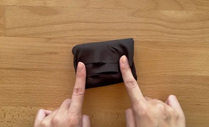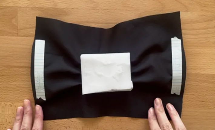 スポンジに布をかぶせ、切れ込み部分に布をくい込ませましょう。