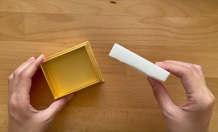 まずは、箱のサイズに合わせてスポンジを切ります。