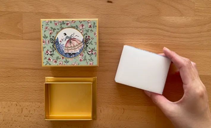 スポンジが箱の深さよりも低くなるように、切るなどして高さを調整してください。