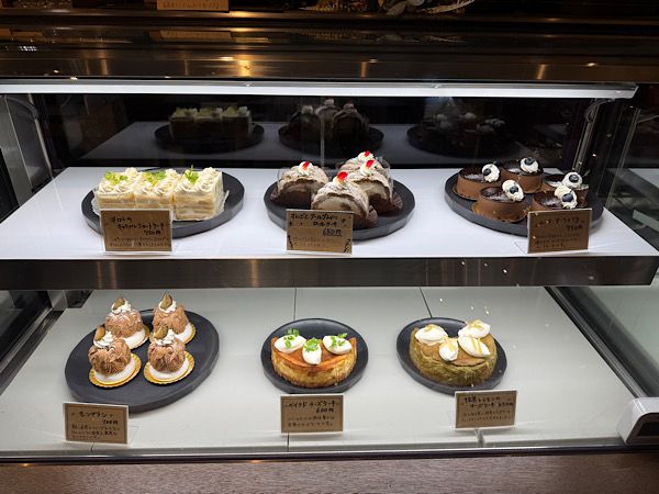 1階のショーケースにケーキが置いてあるのでケーキはそちらでチェックしておいてください。