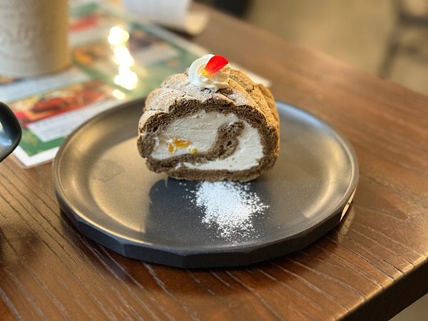 注文はテーブルにあるQRコードからします。 この日はケーキをいただきました。 オレンジとアールグレイのロールケーキ(650円) クリームがたっぷり入っています。爽やか系のクリームなので大きいカットですが重くないです。アールグレイの味がほんのり効いている中にオレンジの果肉が入っています。