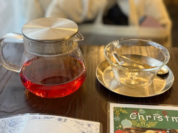 アールグレイ(600円)はポットで出てきたので2杯飲めます。ガラスのカップが雰囲気あります。