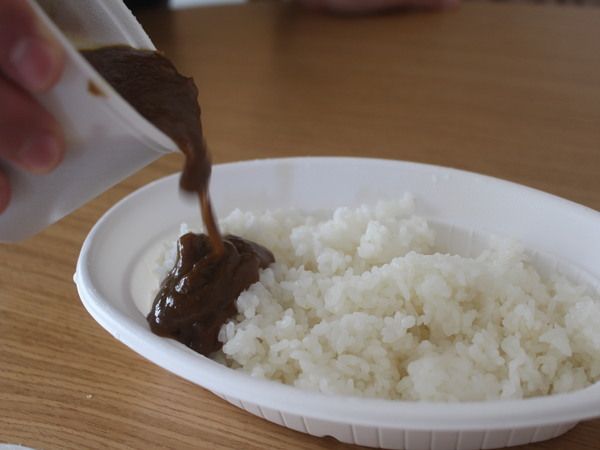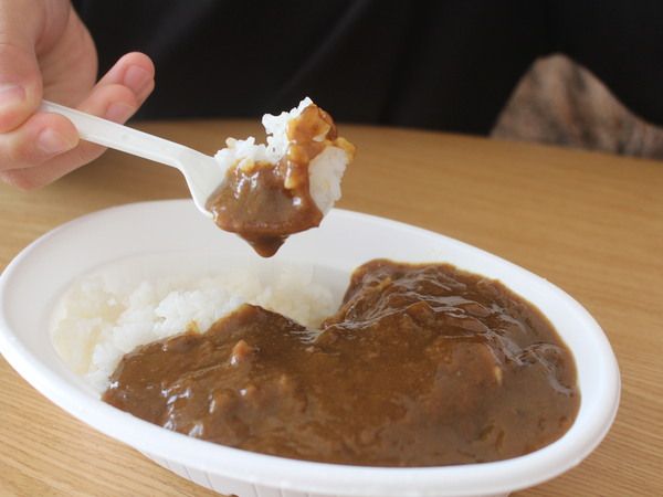 カレーライスはご飯の量もしっかり。ルーは別容器で、自分でかけるスタイルです。