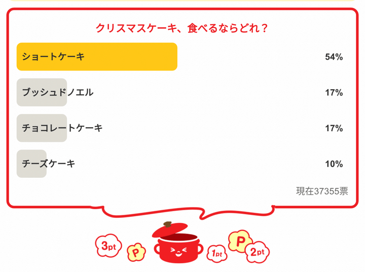 ・「クリスマスケーキ、食べるならどれ?」の結果は…
