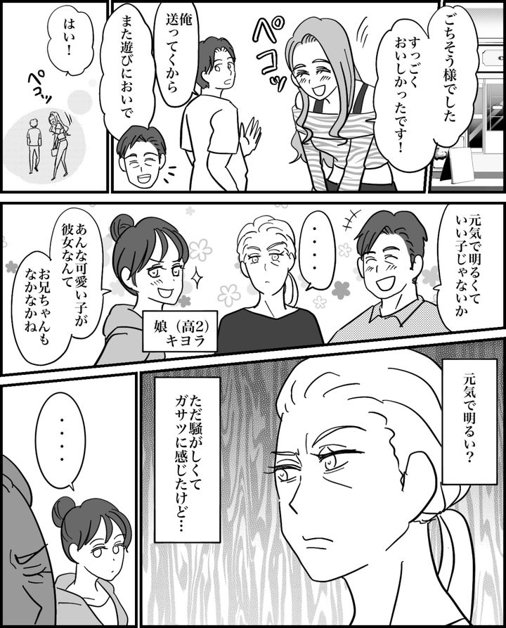 わが子であれば、とっくのとうに叱っていた。それくらい酷い所作でした。夫が柔らかい口調でその場をおさめてくれましたが、私はあんな彼女とは早く別れてほしいと願ってしまったのでした。