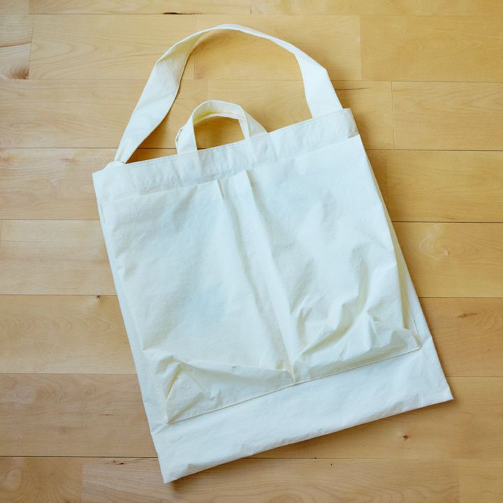 「『イッチ』のバッグは出産祝いでいただいたもの。ポケットが4つあるので、荷物が迷子にならず便利。持ち手は2つついていて、肩掛けもできるしベビーカーに引っ掛けることもできます。軽くて収納力も申し分なし!」