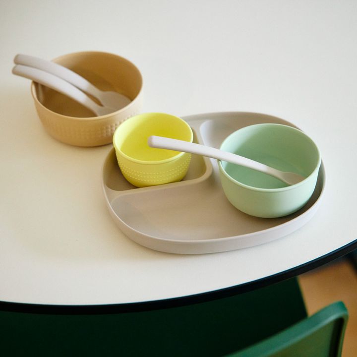 「離乳食がスタートしたので『タネ』の食器セットを愛用中。くすみカラーが可愛く、離乳食を卒業しても使えるのでコスパ的にもGOOD。今はおかゆにチャレンジ中ですが、まだまだミルクの方が好きみたい(笑)。トレイにいろいろなおかずを並べるのも楽しみです」