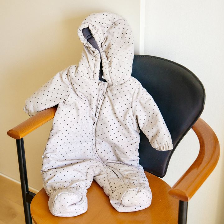 「ベビーカーや抱っこ紐でお出かけをするときは『プチバトー』のカバーオールを。とにかく暖かくて軽く、中がフリースになっているから、真冬でも安心。首元から足首まで大きく開くファスナーで、着脱も簡単!」