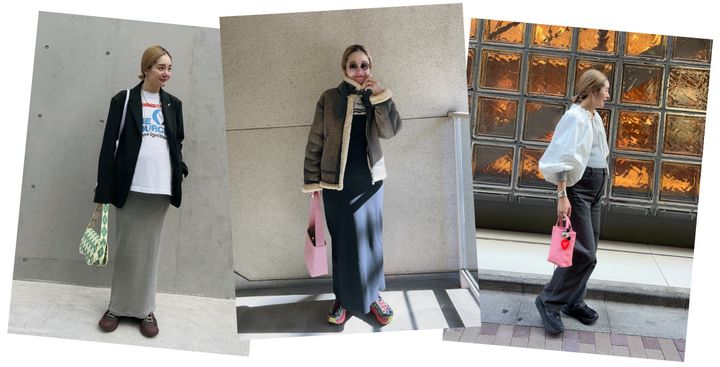 マタニティ用に買ったものはレギンスぐらいで、もともとあるワードローブを活用していました。オーバーサイズのボトムスはお腹が大きくなっても着用できたし、夫のボトムスを借りたことも。ボディラインはあえて隠さず、お腹のシルエットがわかるようなコーデも楽しんでいました。この体型は今だけのものだし、それすらも愛おしかった♡